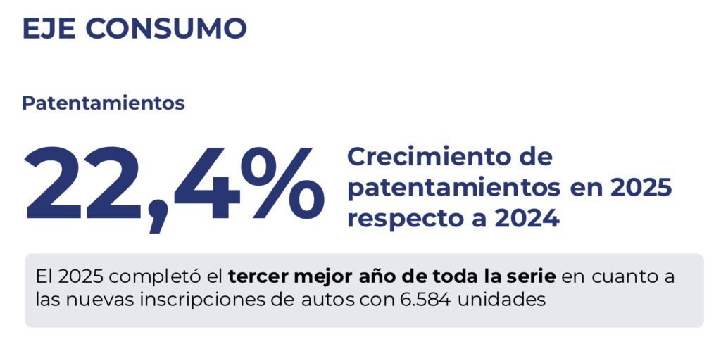 El año cerró con 6.584 patentamientos de automóviles, el tercer mejor registro de la serie histórica, con un crecimiento del 22,4% interanual.