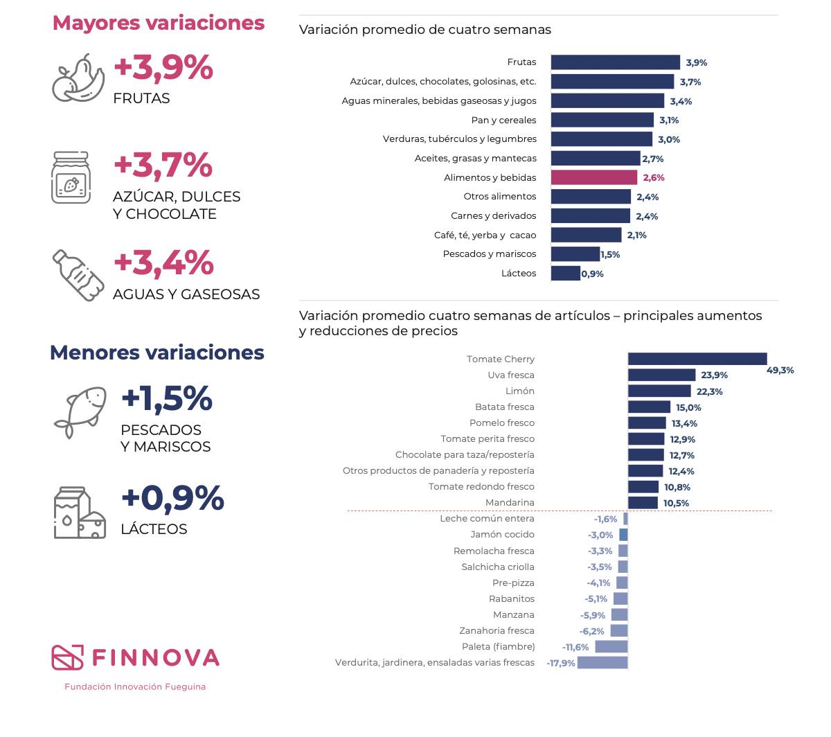 La Fundación Innovación Fueguina (FINNOVA) presentó una nueva actualización del relevamiento de precios online en supermercados de Tierra del Fuego, correspondiente a septiembre de 2025.